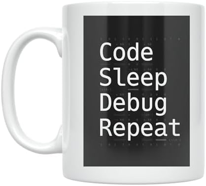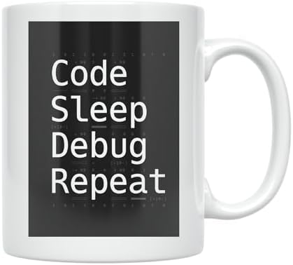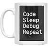 Coder Coffee Mug - Code Sleep Debug Repeat Design - 11 oz White Ceramic - Minimalist Style