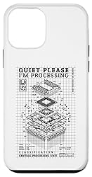 Quiet please I'm processing. Funny technical diagram of pc central processing unit CPU programming computer scientist builder tech computers graphic design. Funny CPU, processor, I'm processing, geek, coding, coder, pc gamer, tech support, programmer and computer builder, user, scientist gifts and network engineer gift ideas for programmers, engineers, coders, students, men, women and kids. Two-part protective case made from a premium scratch-resistant polycarbonate shell and shock absorbent TPU liner protects against drops Printed in the USA Easy installation