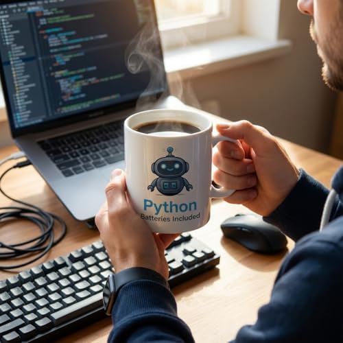 Embrace the power of "Batteries Included" with this premium 11oz coffee mug, designed for every dedicated programmer. Start your coding sessions or unwind after a long day with a comforting beverage in hand, celebrating your passion for Python. Crafted from durable ceramic, this mug is both microwave and dishwasher safe, ensuring lasting quality for your daily ritual. It makes an ideal any developer, coder, or tech enthusiast celebrating a birthday, holiday, or just because.