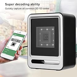 Superfast Omnidirectional Scanning: This fixed barcode scanner captures 1D and 2D codes—including blurred or incomplete barcodes—at up to 2200 scans per second with a 360-degree scanning angle, ensuring -fast checkout and inventory processing without manual aiming. True Plug-and-Play Convenience: Our desktop barcode reader requires no software or app installation—just connect via the included USB cable, and it works instantly in keyboard emulation mode, making setup effortless for retail, warehouse, or office environments. Hands-Free Efficiency for Busy Workflows: Designed as a handsfree barcode scanner, this desktop unit sits securely on your counter so you can place items directly under it, freeing both hands to sort packages, handle payments, or manage stock without pausing to aim or trigger a scan. Durable Build with Clear Feedback: The silver fixed barcode scanner features a rugged housing, bright red LED illumination for low-light scanning, and an audible buzzer plus visual LED indicator to confirm every successful read, reducing errors during high-volume operations. Wide Compatibility and Complete Package: This desktop QR code scanner supports all major 1D and 2D symbologies including UPC, EAN, Code 128, QR, and PDF417, and comes with a USB cable, user manual, and compact dimensions (4.3 x 2.1 x 4.7 in) for easy integration into any workspace.