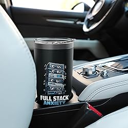 Wobbly stack of anxious servers with sweaty faces says what every full stack dev feels: everything is your job, nothing is stable, and the deploy clock is ticking. Perfect dark tech humor for coding, debugging, sprints, and release week. For full stack developers, web developers, freelancers, and software engineers who live in merge conflicts, mysterious fixes, and copy paste snippets that somehow work in production. Great conversation starter for standups, code reviews, and on call nights Dual wall insulated: keeps beverages hot or cold Stainless Steel, BPA Free Leak proof lid with clear slider