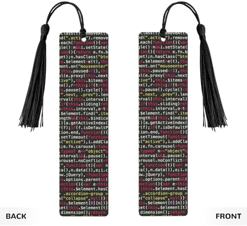 (Programmer Programming Code) 5PCS Wooden Bookmarks Set with Tassels Double-Sided Printed Wood Page Markers Gift for Book Lovers