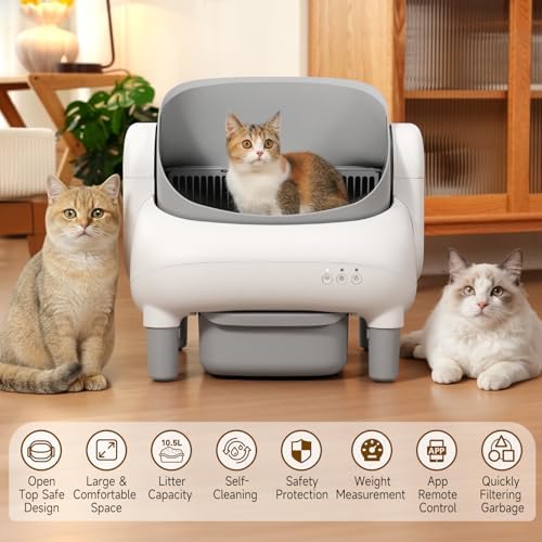 Automatic Cat Litter Box, Self Cleaning Litter Box for Multiple Cats with Open Top Design, App Control, Safet Protection,Ultra-Quiet,Easy Setup,Light Gray