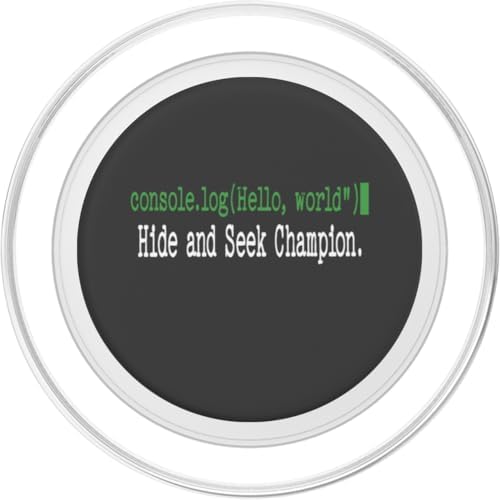 - This design features the classic "Hello, world" code snippet with a missing semicolon, captioned "Hide and Seek Champion." It's a perfect inside joke for any coder who knows the pain of hunting down that one missing character that breaks everything.