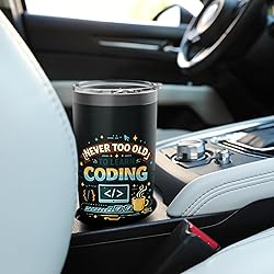 Never Too Old To Learn Coding Cool Senior Developer Apparel, Perfect for grandpas and grandmas who are diving into programming. Whether it's Python, Java, or HTML, show the world that logic and creativity have no expiration date. Tech-Savvy Seniors & Lifelong Learners Tee, A great gift for retired engineers, computer science students of all ages, or any senior citizen who loves technology and "Hello World" moments Dual wall insulated: keeps beverages hot or cold Stainless Steel, BPA Free Leak proof lid with clear slider