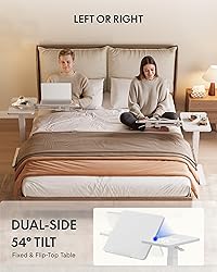 Height Adjustable C-Shaped End Table for Sofa & Bedside:One-touch gas spring lift lets you smoothly adjust the height from 25.6" to 41.1", making this side table easy to use next to sofas, chairs, or beds—no power needed. Split Tilting Desktop – Two Surfaces, More Flexibility:Spacious 31.6" × 15.7" tabletop features a smart split design: a 19.8" × 15.7" tilting section adjusts up to ±54° for reading or laptop use, while the 11.8" × 15.7" fixed surface keeps drinks, books, or phones secure. Space-Saving C-Shaped Design Slides Under Furniture:Single-column C-frame allows the table to slide closely under sofas and beds, bringing the surface right to your side—ideal for small living rooms, bedrooms, or apartments. Hidden 360° Swivel Wheels for Easy Movement:Four built-in hidden casters glide smoothly in any direction, allowing you to roll the table effortlessly from couch to bedside without lifting. Ultra-Slim Base Fits Low-Clearance Furniture:Super-thin base measuring only 1.18" high fits under sofas or beds with minimal clearance, making this mobile end table perfect for tight spaces.