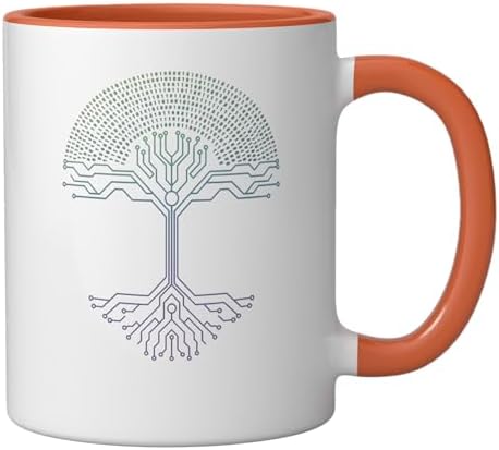 Stem Circuit Tree Tech Tree Binary Art For Coders Ceramic Mug, Orange/White