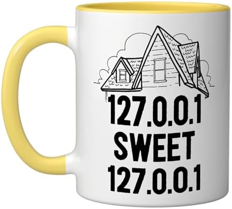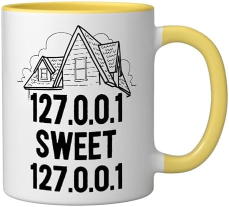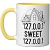 Sweet 127.0.0.1 Computer Programming Coder Coding Ceramic Mug, Yellow/White