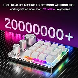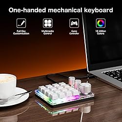 CUSTOMIZABLE 16 KEYS AND 3 KNOBS: This keyboard allows you to customize key functions for drawing, programming, volume control, gaming, and shortcuts etc. All keys are programmable. DIY KEYBOARD AND KEYS: Customize the meaning of each key and knob for your own gaming experience, giving an accurate, fast response, and a new level of gaming and typing experience. WIDE APPLICATION: This USB wired programmable keyboard is not only suitable for gaming, but also for opening files and websites with a single press, making it a useful tool for learning and work. EASY TO USE: No need for complicated installation, as our keyboard does not require driver installation. After installing the software and completing the settings, you can embark on a gaming journey. ENHANCED USER EXPERIENCE: Aluminum alloy knobs, ABS+Acrylic keycaps, and body housing provide long time durability. Three layer design, maximum of 18 consecutive input characters.