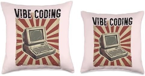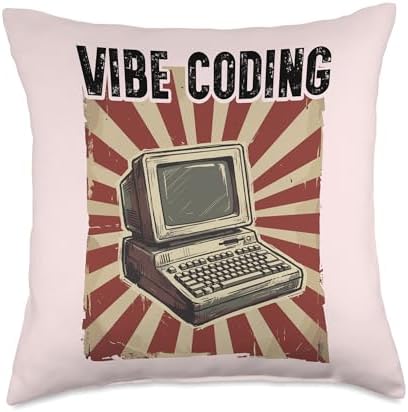 Vibe Coding Retro Computer Programmer Developer Throw Pillow