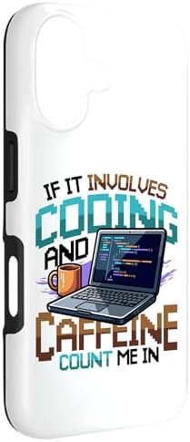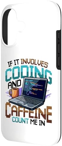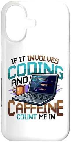- This computer science themed design features a pixel art laptop and coffee mug with the quote 'IF IT INVOLVES CODING AND CAFFEINE COUNT ME IN'. Perfect for every software engineer, web developer, and tech geek.