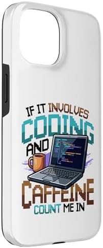 - This computer science themed design features a pixel art laptop and coffee mug with the quote 'IF IT INVOLVES CODING AND CAFFEINE COUNT ME IN'. Perfect for every software engineer, web developer, and tech geek.