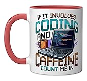 - This computer science themed design features a pixel art laptop and coffee mug with the quote 'IF IT INVOLVES CODING AND CAFFEINE COUNT ME IN'. Perfect for every software engineer, web developer, and tech geek. This Programmer Humor Involves Coding And Caffeine Programming is designed by Retro Pixel Art Developer Designs.