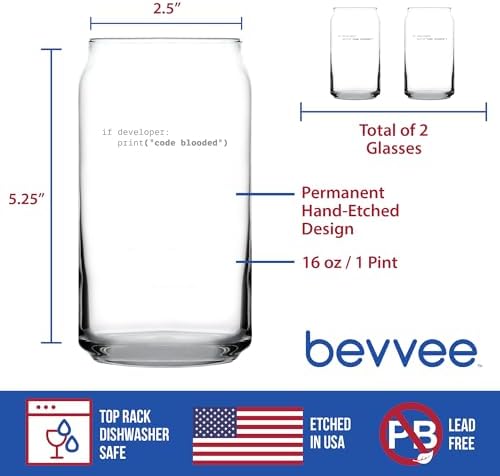 Give them a glassware update with a coding themed cup scripted with witty syntax, the perfect gift that keeps on refreshing. - Made in USA Quality - American Made 16 oz beer can shaped pint glass suitable for a hoppy ipa, a refreshing pilsner, or delicious craft stout. - Etched text (not printed) - The text is engraved by hand in Colorado and will never wear off - Individually gift boxed glasses designed to ensure safe delivery - Dishwasher safe! Great for daily use Great beer gift if you're looking for fun gifts for your coworkers, friends or family. Whether you're wishing a big happy birthday to your favorite beer lover like your best friends or coworkers, this unique glassware will leave your recipient laughing at the memories created with this gift for years. The design is hand engraved (not printed) into the durable, bar quality pints glass so that it never wears off. These are fantastic presents from a friend, son or daughter that will be cherished for years to come. This isn’t a cheap novelty gag gift. This is quality, dishwasher-safe glassware that is perfect for use as your daily glass... made and engraved in the USA to boot! All Bevvee glasses are individually boxed and protected for safe delivery. The carefully etched text will never wear off with heavy washing because of the engraving. Each detail is carefully engraved by hand by skilled artisans in our small shop in Northern Colorado. We know you probably have a lot of gift ideas for your favorite beer lover, so thanks for considering our Bevvee Pint Glasses. Cheers!