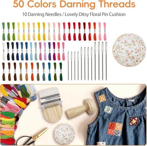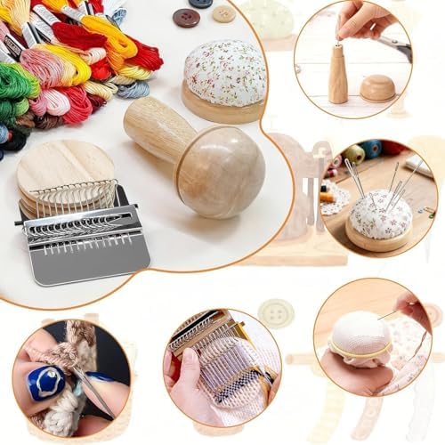 Knit Patch Kit Patch Maker Portable Darning Sewing Tool for Beginners DIY Holes Repair Patchwork Weaving Tool Set (Mushroom Style Set)