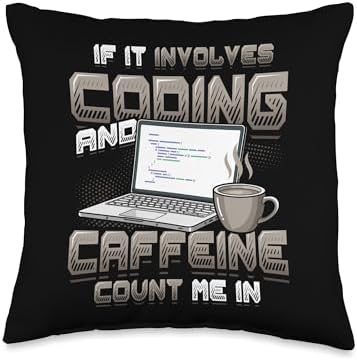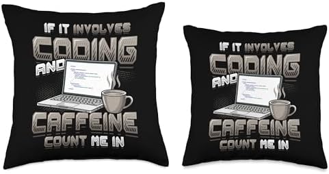 - This computer science themed design features a laptop displaying code next to a steaming coffee mug with the quote 'IF IT INVOLVES CODING AND CAFFEINE COUNT ME IN'. Perfect for every software engineer, web developer, and tech geek.