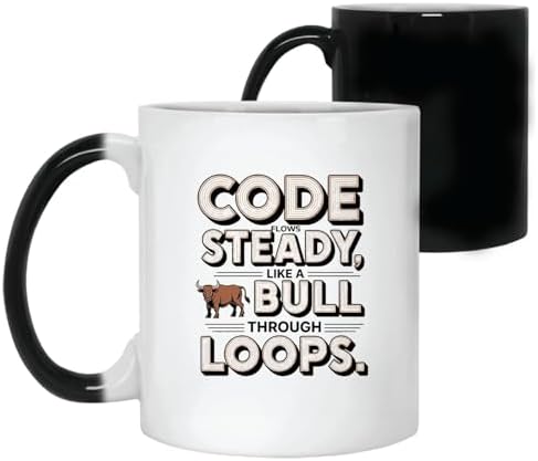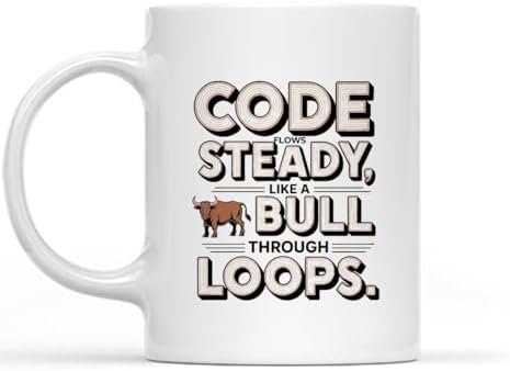 Make every moment special with our Code flows steady, like a bull through loops. porcelain React/Vue Pro Taurus mug. Whether you're shopping for Javascript Developer, Web Developer, Programmer, our coffee mugs let you add custom quote to create a truly singular gift. Perfect for, or Birthday, Christmas when you want to make someone smile. Our charming mugs are ideal for memorabilia, wedding gift, or reminder. Simply choose your name during checkout. Our team will create your personalized drinkware with excellent quality and gentle processing. Great for satisfaction, fostering harmony, and cementing moments with neighbors. Whether you're looking for assorted selections, tender, or unique that stand out, our complete set has best choices for everyone. Order your occasion mug today and give something truly special and memorable for Code flows steady, like a bull through loops. celebrations.