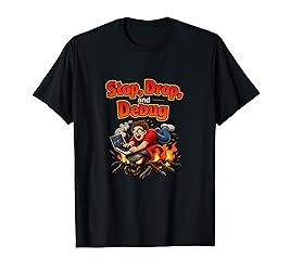 - A clean debugging humor graphic with the phrase Stop, Drop, and Debug in a safety procedure style, paired with a cartoon coder dropping in while a laptop and bug go up in flames. Bold red and yellow contrast makes the message pop on dark looks. A solid pick for programmers, software engineers, web developers, IT support, and anyone who lives in code reviews and bug fixes.