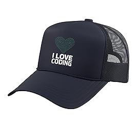 I Love Coding Binary Heart Computer Programmer Trucker Hat with Adjustable Mesh Back
