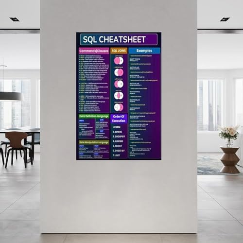 SQL Cheat Sheet Poster - Desktop Quick Reference for Programmers (6) Canvas Painting for Living Room Bedroom Decor (Unframe-style, 08x12inch(20x30cm))