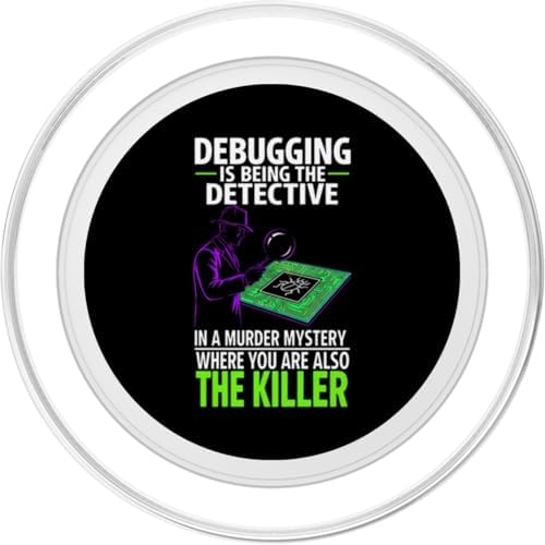 - Features the quote "Debugging Is Being The Detective In A Murder Mystery Where You Are Also The Killer". This design perfectly captures the frustration of the software engineer who spends hours hunting down a bug only to realize it was their own typo.