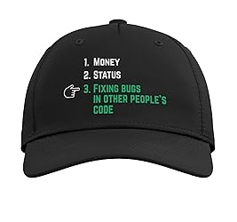 Awesome design - the perfect statement piece for anyone who wants to show their love for Coding and funny humor. With its retro design and funny expression, it is sure to turn heads and start conversations. Looking for unique and memorable gifts for women or men? This eye-catching vintage design is the perfect choice! Great gifts for colleagues, friends and family. Classic five-panel structured baseball hat with high-profile crown Adjustable fit; one size fits most adults