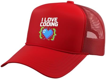 I Love Coding Heart Pixels Code Trucker Hat with Adjustable Mesh Back