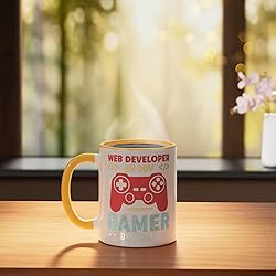 Web Developer Gaming Coding Gamer Programmer Ceramic Mug, Yellow/White