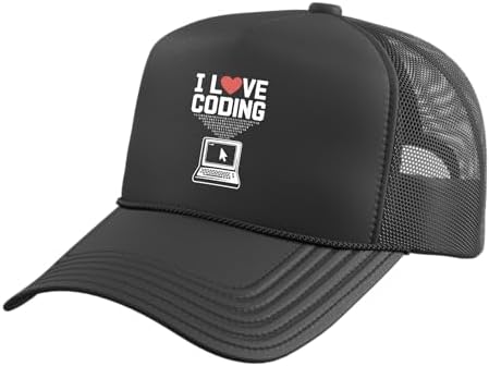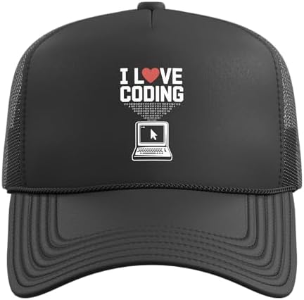 I Love Coding Computer Programmer Heart Trucker Hat with Adjustable Mesh Back