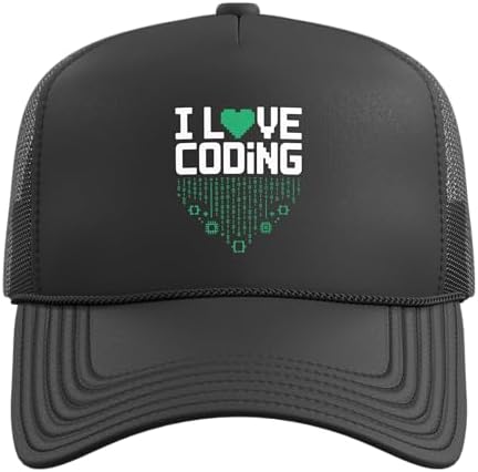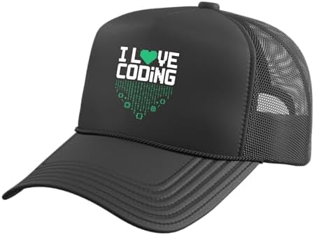 I Love Coding Heart Binary Code Design Trucker Hat with Adjustable Mesh Back