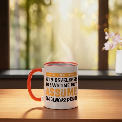 Web Developer Coding Geek Sarcastic Developer Ceramic Mug, Orange/White