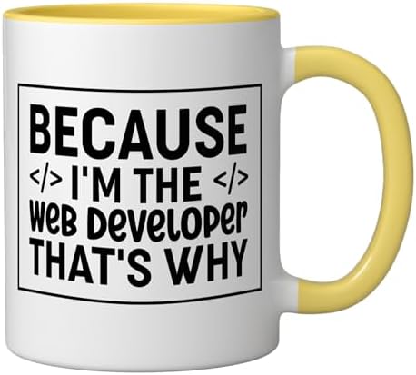 Web Developer Quote Coding Geek Developer Ceramic Mug, Yellow/White