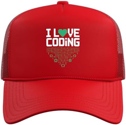 I Love Coding Heart Binary Code Design Trucker Hat with Adjustable Mesh Back