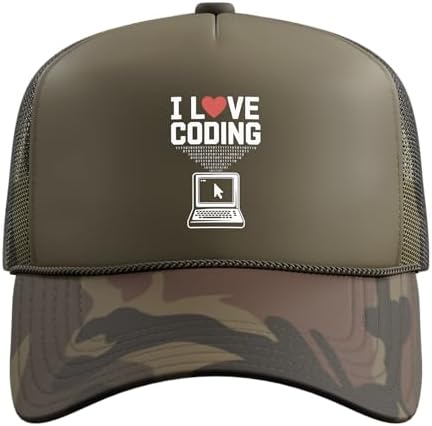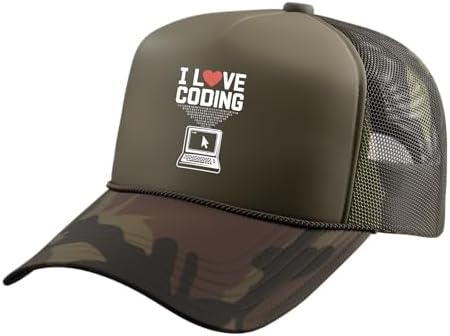 I Love Coding Computer Programmer Heart Trucker Hat with Adjustable Mesh Back