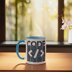 Code Vintage Coding Retro Programmer Nerd Ceramic Mug, Blue/White