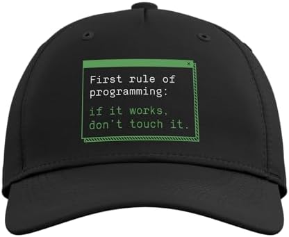 "First rule of programming: if it works, don't touch it" design. The perfect statement piece for anyone who wants to show off their knowledge, skills, or passion. With its vintage design and bold lettering, it is sure to turn heads and start conversations. Looking for unique and memorable gifts for women or men? This eye-catching design is the perfect choice for anyone who loves vintage style and has a passion for a particular profession or hobby. Great gifts for colleagues, friends and family!