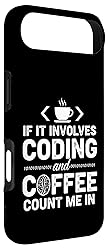 If It Involves Coding And Coffee Count Me In Funny Coder Design. This vintage software developer life design features a humorous phrase, with a cup of hot steaming coffee between angle brackets coding web html code with a digital coffee bean, & binary code Great for coders, computer programmers, and web developers that love coding and drinking coffee. Wear this funny coding design to work, computer science class, and more. Two-part protective case made from a premium scratch-resistant polycarbonate shell and shock absorbent TPU liner protects against drops Printed in the USA Easy installation