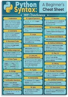 Python Cheat Sheet Computer Science Coding Beginners Guide Poster Canvas Poster Canvas Art Poster And Wall Art Picture Print Modern Family Bedroom Decor PostersWelcome to our store.StartᅠyourᅠArtᅠTravelᅠonᅠmyᅠShopᅠNow,FindingᅠtheᅠAmazingᅠArtᅠandᅠenjoyingᅠyourᅠTimeArt originates from life, but higher than lifePosters make great gifts and decorations, and they are definitely one of the best choices for wall art in your homeWe strive to provide accurate descriptions and realistic imagesBecause everyone's monitor is different, the poster may have a slight color difference