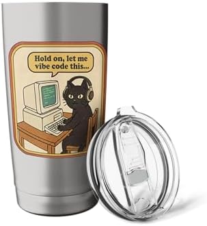 Hold on let me Vibe Code Funny Cat Software Developer AI Stainless Steel Insulated Tumbler