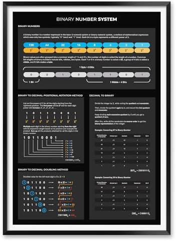 MeloPrints Binary Number System & Decimal Conversion Poster, Computer Science Reference Chart, Black