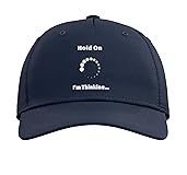 This funny nerd loading design with a loading symbol and the quote Hold On I'm Thinking is perfect for boys, girls, men, women, engineers, computer programmers, Math teachers and pupils, gamers, and everyone who buffers to think. Make everyone laugh with this funny processing or buffering design. This is a great idea to make everyone laugh to wear when you are working, studying, gaming, or in serious life situations and doing a deep thought. Classic five-panel structured baseball hat with high-profile crown Adjustable fit; one size fits most adults