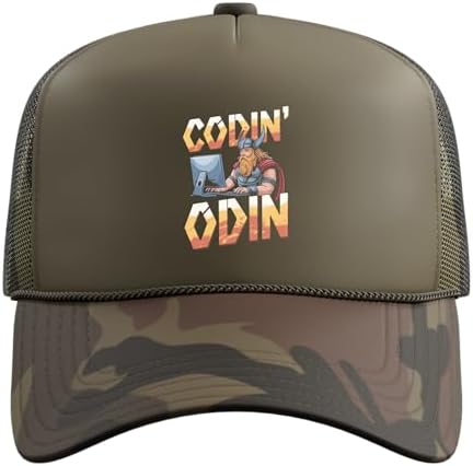 Codin' Odin - Funny Coder Software Programmer Coding Trucker Hat with Adjustable Mesh Back