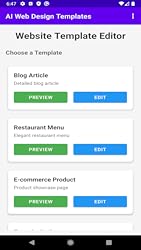 This app gives you 20 web design templates which are reflexive and cover a variety of industries. The app is for rapid prototypes and requires HTML and some CSS knowledge. This allows for infinite web designs for your portfolio or your clients. No WI-FI needed No ads No personal data taken or used GDPR compliant Made in the USA