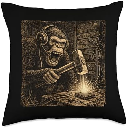 Server Room Monkey Sysadmin Devops Tech Humor IT Programmer Throw Pillow