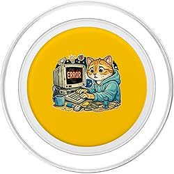 Features a cute orange toddler kitten junior programmer at a retro workstation, dealing with a classic computer error. The detailed graphic with robots, rockets, and tech icons perfectly captures the fun and frustration of learning to code at a young age. Magnetically snaps on and off your phone case so you can easily swap between MagSafe compatible accessories. Adaptor ring included. Make any phone case MagSafe compatible by attaching the adaptor ring. A phone case is required but not included to use the wallet. Printed top is swappable. Close and twist to swap the top with a new design with other compatible PopGrip models.