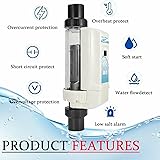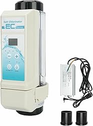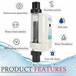 【WATER QUALITY IMPROVEMENT】 The salt water chlorination system reduces skin and eye irritation by adjusting the salinity and chlorine levels in the water, protecting your clothing from fading and keeping your pool water clean. 【MULTIFUNCTIONAL PROTECTION】Salt chlorine machine with salt high and low tips and fault alarm function;and water temperature protection (10-40 degrees), water shortage and water protection, etc., effectively extend the life of salt chlorine generator.The automatic conversion of the electrode can reduce the generation of dirt 【EASY TO USE】 You can complete the salt water pool chlorinator system installation in 15 minutes, through pool salt system LED control panel equipped and it executes the last parameter after automatic power on. 【MULTI-FUNCTIONS】 Salt water pool chlorinator system produces 8/12/16/20 grams of chlorine per hour and uses 1.5 pipe fitting with an led control panel integrated into the salt cell that does not need to be linked into the original control panel to operate. Designed with removable structure for detachable titanium metal plate for easy installation and maintenance. 【WATER LEVEL DETECTION】Thechlorine generator with water level detection and plastic salt level is suitable for pool and spa water treatment. This salt chlorine machine ensures that your pool water is always at the optimal chlorine level, keeping your pool safe and clean for swimming.