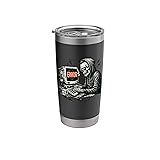 This gritty, vintage-style design features The Eternal Debugger skeleton working tirelessly at a retro computer with a glowing "ERROR" message. Capturing the dark humor of software development and late-night coding sessions. Might be a funny idea for software engineers, web developers, and sysadmins who know the struggle of finding that one elusive bug. Dual wall insulated: keeps beverages hot or cold Stainless Steel, BPA Free Leak proof lid with clear slider