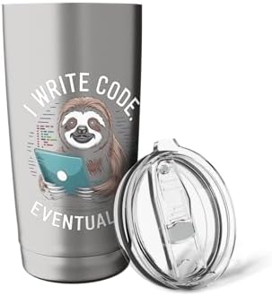 Ideal for relaxed programmers, software developers, and students who relate to slow but steady progress. With a cute sloth holding a device and the phrase I WRITE CODE.. EVENTUALLY.