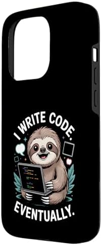 Ideal for relaxed programmers, software developers, and students who relate to slow but steady progress. With a cute sloth holding a device and the phrase I WRITE CODE.. EVENTUALLY.