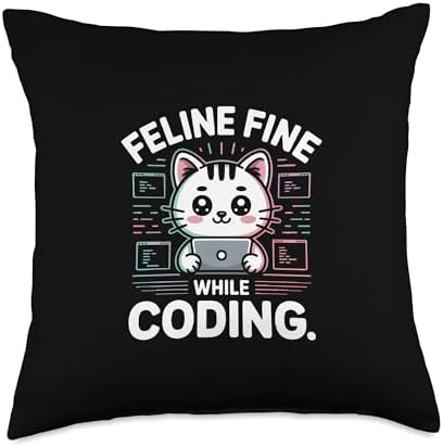 Feline Fine While Coding Programmer Throw Pillow